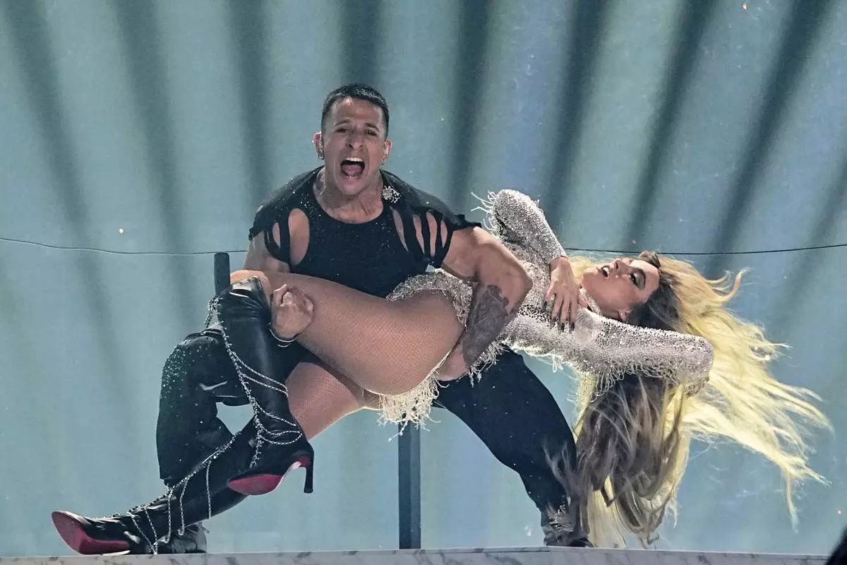 Melody from Spain performs the song "ESA DIVA" during the Grand Final of the 69th Eurovision Song Contest, in Basel, Switzerland, Saturday, May 17, 2025. (AP Photo/Martin Meissner)