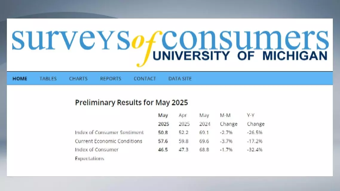The preliminary May sentiment index declined to 50.8 from 52.2 a month earlier, according to the data released by the University of Michigan on Friday. That is the second-lowest reading on record, behind June 2022.