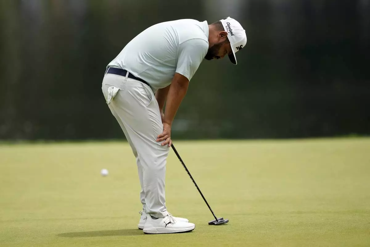 The world's No. 2 player and recent Masters champion was looking to make a move up the leaderboard late in the second round Friday after pulling within seven shots of leader Jhonattan Vegas.