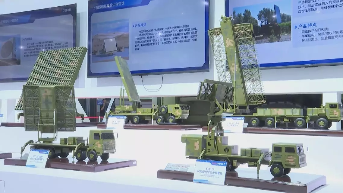 At the exhibition area of the China Electronics Technology Group Corporation (CETC), a variety of radar equipment is displayed, featuring functions such as high mobility, multifunctionality, air defense and anti-missile capabilities.