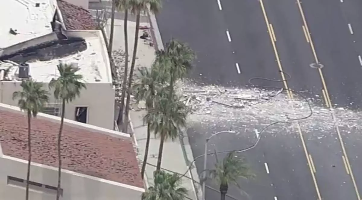 Damage to a building is seen after an explosion in Palm Springs, Calif., on Saturday, May 17, 2025. (AP Photo/Eric Thayer)