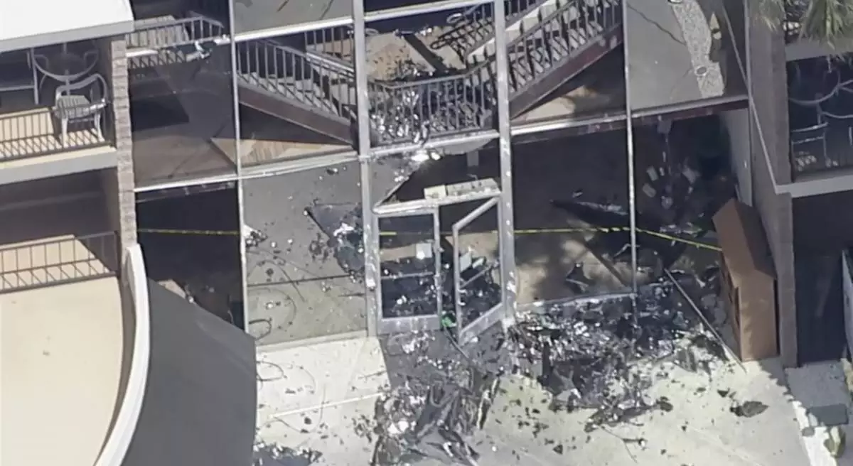 Debris covers the ground after an explosion on Saturday, May 17, 2025 in Palm Springs, Calif. (ABC7 Los Angeles via AP)