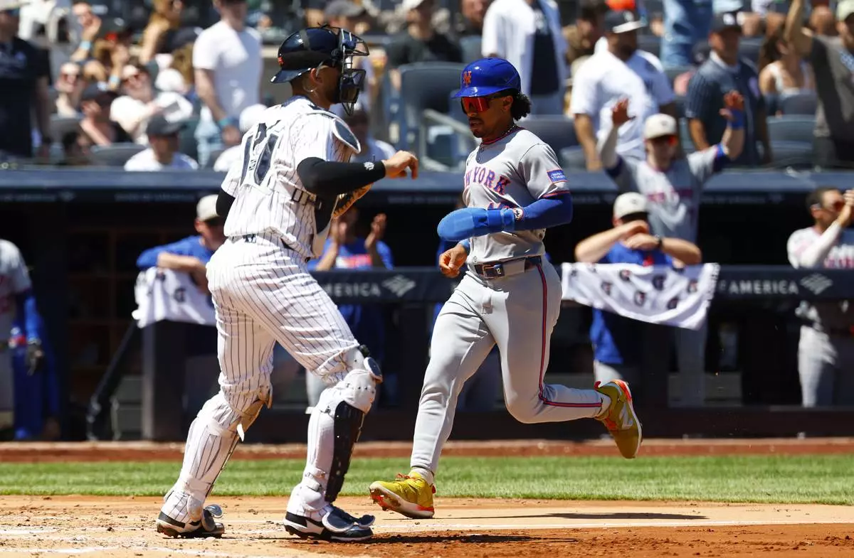 A day after the Yankees won the opener of six regular-season meetings 6-2, Francisco Lindor's ninth-inning sacrifice fly off Fernando Cruz broke a 2-all tie and Edwin Díaz ended the game by getting Aaron Judge to swing over a 98.6 mph full-count fastball. A runner on each team was thrown at the plate, and an umpire interference call on himself by James Jean negated a Yankees double steal.