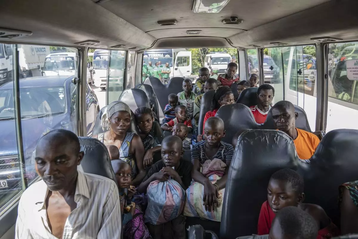 Rwandan refugees who were living in eastern Congo since the 1994 Rwanda genocide are repatriated by bus from Goma, Democratic Republic of the Congo, on Saturday, May 17, 2025. (AP Photo/Moses Sawasawa)
