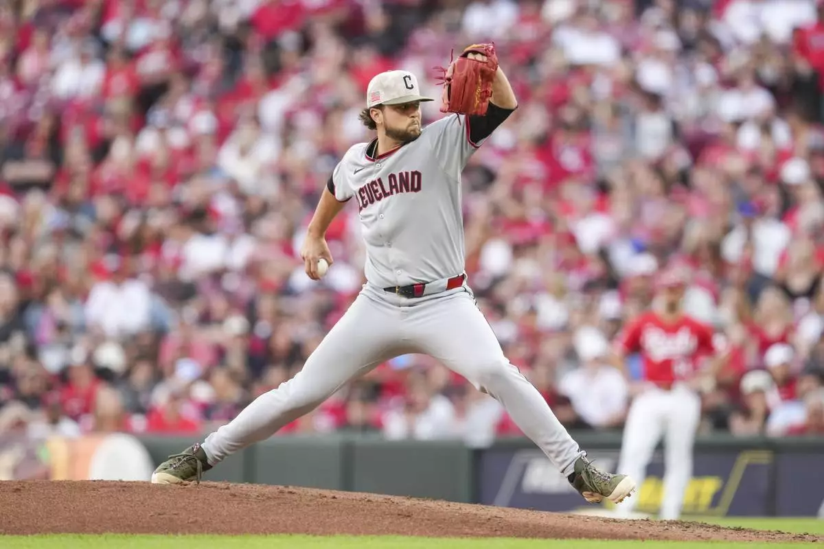 Cleveland Guardians pitcher Slade Cecconi throws during the third inning of a baseball game against the Cincinnati Reds, Saturday, May 17, 2025, in Cincinnati. (AP Photo/Jeff Dean)