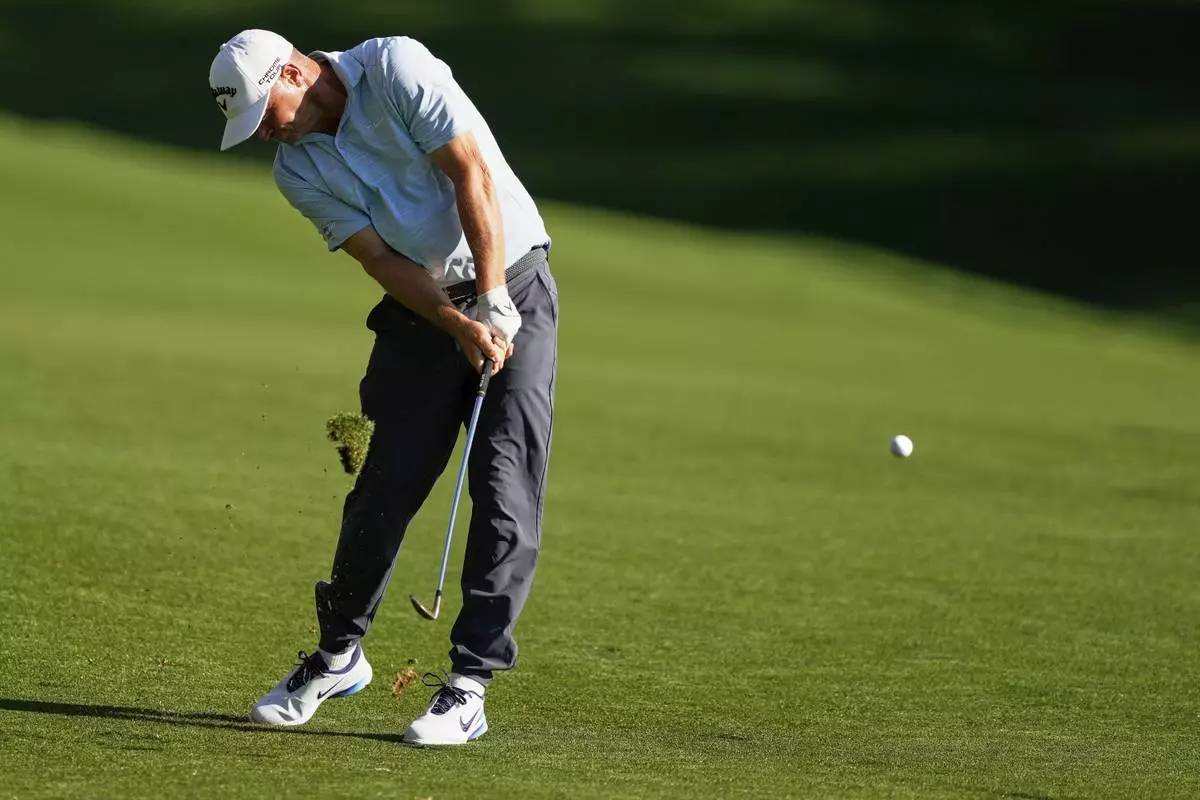 Alex Noren, of Sweden, hits from the fairway on the 18th hole during the third round of the PGA Championship golf tournament at the Quail Hollow Club, Saturday, May 17, 2025, in Charlotte, N.C. (AP Photo/Matt York)