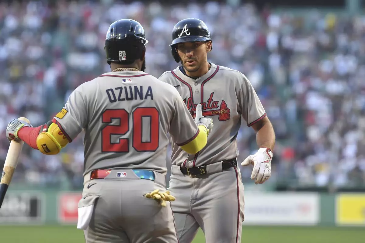 Atlanta’s Matt Olson and Marcell Ozuna hit consecutive first-inning homers off Lucas Giolito, helping the Braves build a 5-0 lead before the Red Sox came charging back with two runs in the seventh and two in the eighth.
