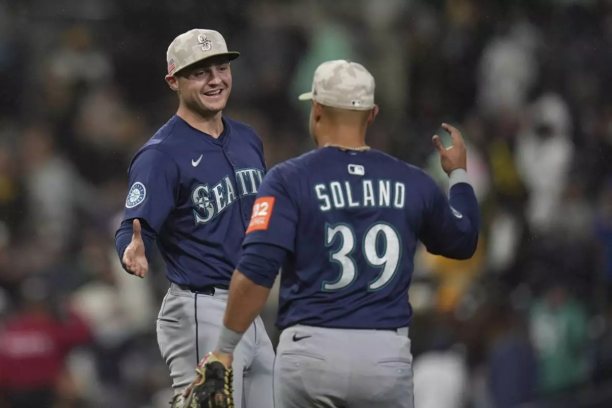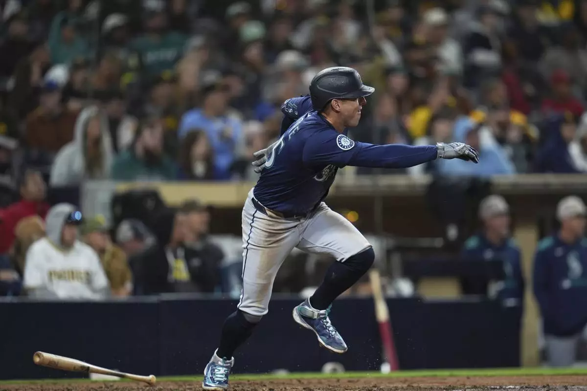 SAN DIEGO (AP) — Cal Raleigh led off the seventh inning with his 15th home run to break a tie, Dylan Moore had a two-run single in the ninth and the Seattle Mariners beat the San Diego Padres 4-1 on Saturday night.