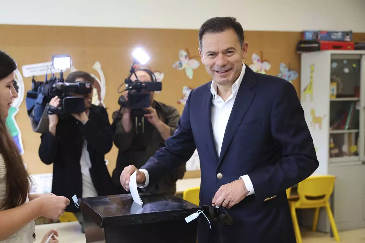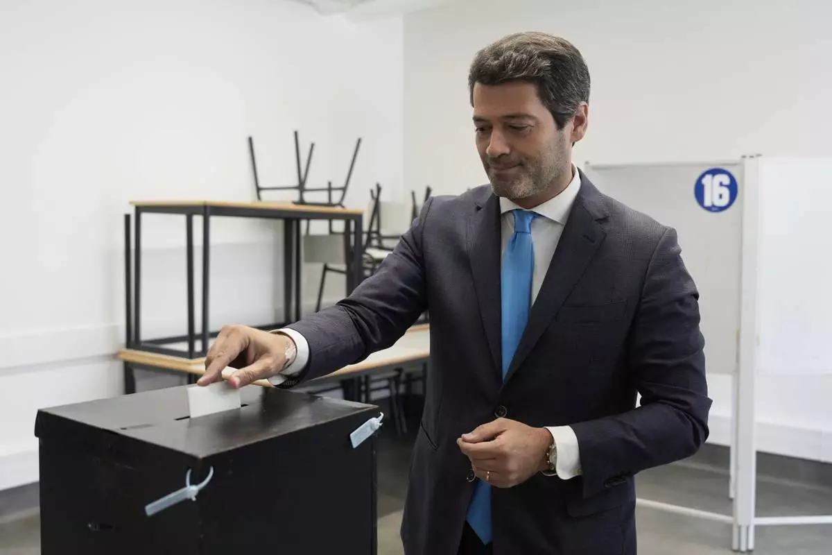 Incumbent Prime Minister and leader of the center-right Social Democratic Party Luis Montenegro casts his ballot in Portugal's general election at polling station in Espinho, Portugal, Sunday, May 18, 2025. (AP Photo/Luis Vieira)
