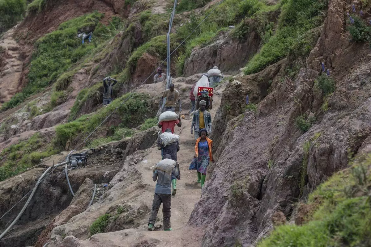 RUBAYA, Congo (AP) — Nestled in the green hills of Masisi territory in Congo, at the artisanal Rubaya mining site, hundreds of men labor by hand to extract coltan, a key mineral crucial for producing modern electronics and defense technology.
