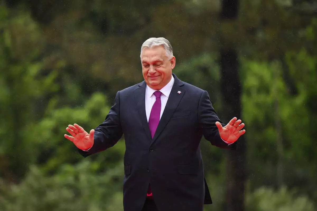 Hungarian Prime Minister Viktor Orban, arrives at European Political Community summit in Skanderbeg Square in Tirana, Albania, on Friday, May 16, 2025. (Leon Neal/Pool via AP)