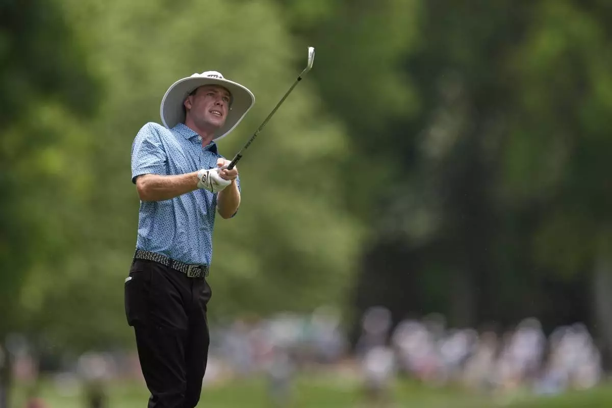 Joe Highsmith hits from the fairway on the second hole during the final round of the PGA Championship golf tournament at the Quail Hollow Club, Sunday, May 18, 2025, in Charlotte, N.C. (AP Photo/George Walker IV)