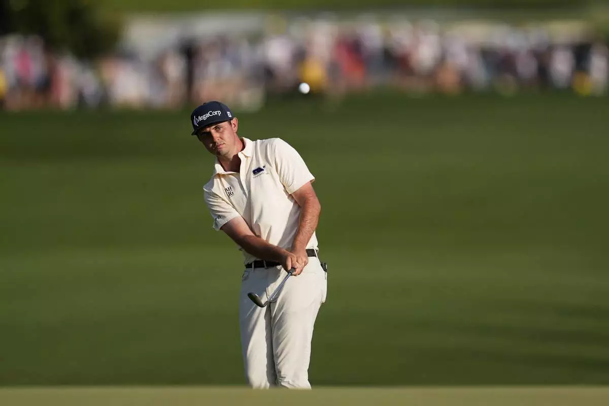 J.T. Poston chips to the green on the 18th hole during the final round of the PGA Championship golf tournament at the Quail Hollow Club, Sunday, May 18, 2025, in Charlotte, N.C. (AP Photo/George Walker IV)