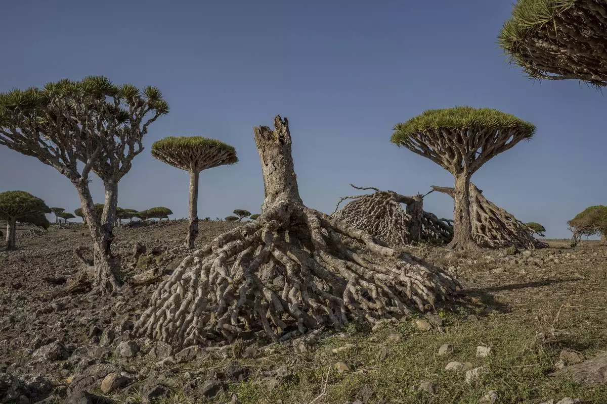 But the tree is more than a botanical curiosity: It’s a pillar of Socotra’s ecosystem. The umbrella-like canopies capture fog and rain, which they channel into the soil below, allowing neighboring plants to thrive in the arid climate.
