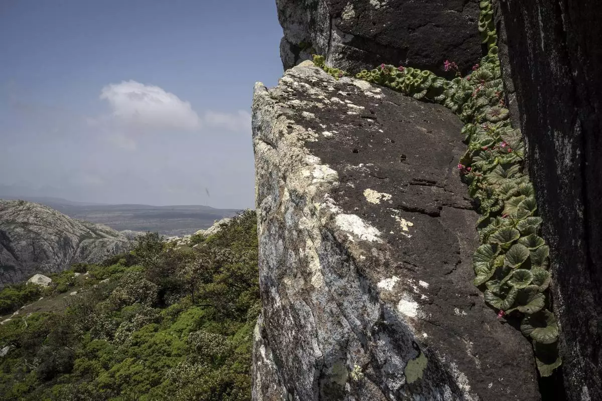 Begonia socotrana grows on a rock on the Yemeni island of Socotra on Sept. 19, 2024. (AP Photo/Annika Hammerschlag)