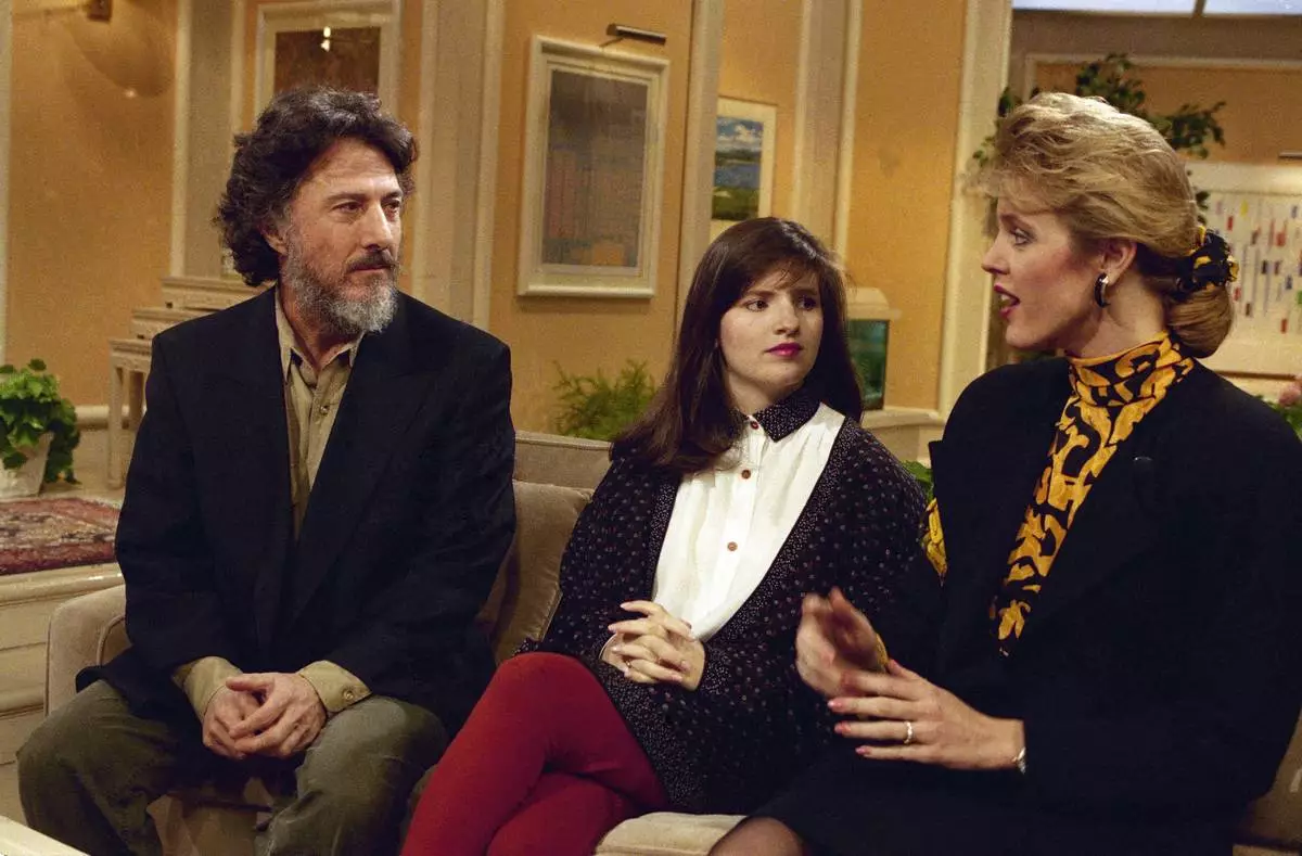 FILE - Actor Dustin Hoffman and Allison Atlas talk with Deborah Norville, at right, while taping a spot on the NBC "Today Show" in New York, February 28, 1990. (AP Photo/Marty Lederhandler, File)