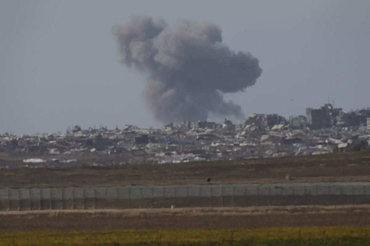 Smoke rises following an Israeli army bombardment in the Gaza Stip, as seen from southern Israel, Monday, May 19, 2025. (AP Photo/Ohad Zwigenberg)