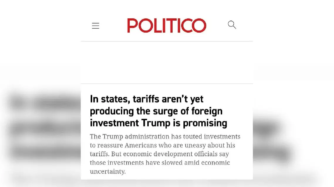 A recent Politico article has revealed that contrary to White House claims of tariffs bringing "trillions of dollars of foreign investments", state officials report the policies have actually slowed capital inflows due to economic uncertainty.