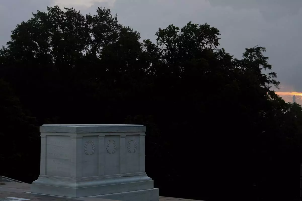 The Associated Press was given rare access to the changing of the guard at the sunrise hour, as the cemetery was still closed to the public.