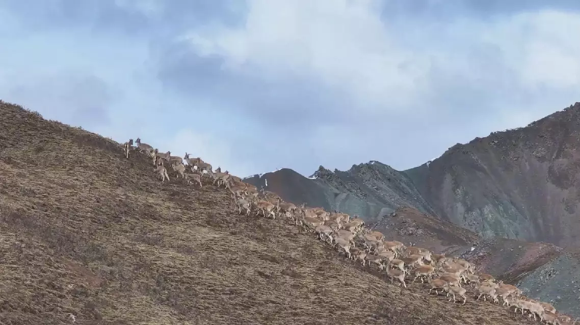 Nearly 1,000 bharals -- unmatched masters of climbing under Class Two national protection in China -- were caught on camera foraging on hillsides and cliffs in Qilian County of northwest China's Qinghai Province on May 14, amid constantly improving environment there.