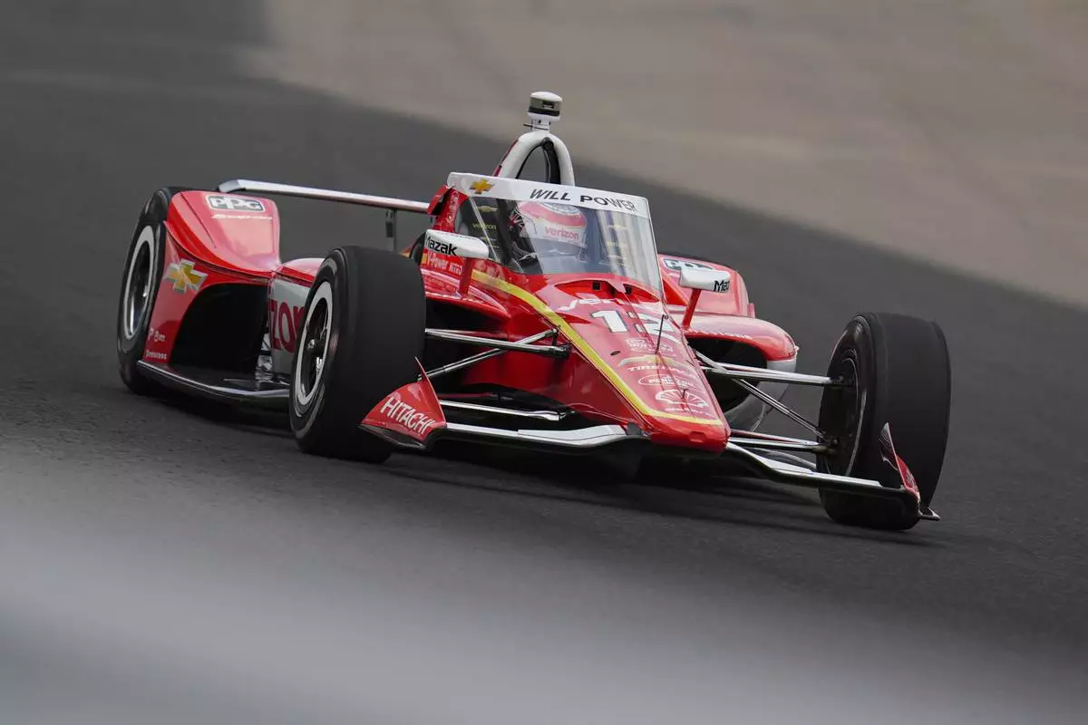 Will Power, of Australia, drives through the first turn during practice for the Indianapolis 500 auto race at Indianapolis Motor Speedway in Indianapolis, Thursday, May 15, 2025. (AP Photo/Michael Conroy)