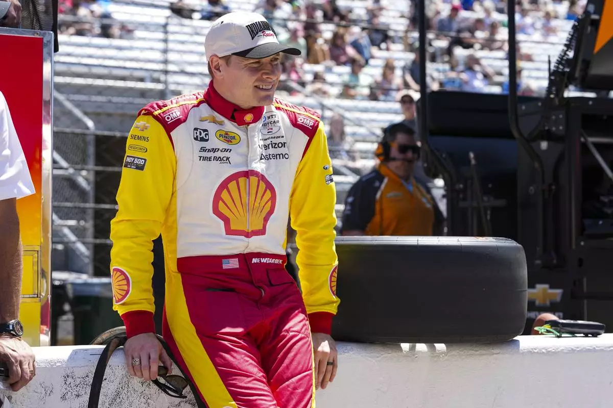 Josef Newgarden waits for the start of practice for the Indianapolis 500 auto race at Indianapolis Motor Speedway in Indianapolis, Sunday, May 18, 2025. (AP Photo/Michael Conroy)