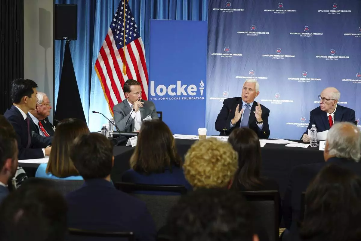 “It is ultimately for the most part American consumers that will pay the price of higher tariffs,” Pence said at the event assembled by Pence’s Advancing American Freedom Foundation and the Raleigh-based John Locke Foundation.