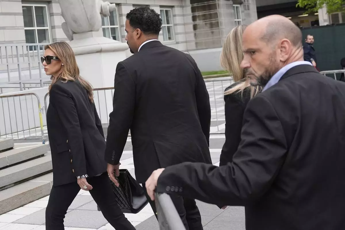 Interim US Attorney for New Jersey Alina Habba, left, arrives to the courthouse in Newark, N.J., Thursday, May 15, 2025. (AP Photo/Seth Wenig)
