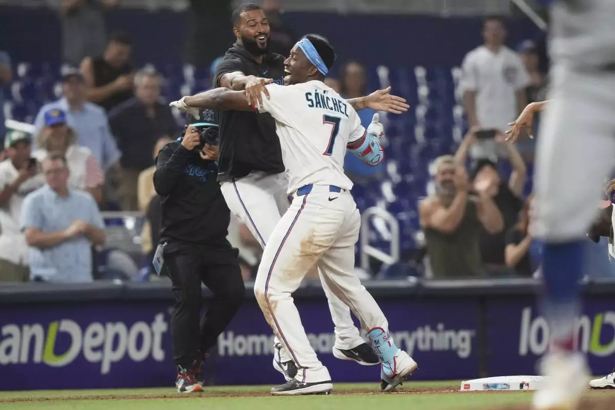 Miami was down to its last strike against reliever Daniel Palencia (0-1) when Derek Hill doubled on an 0-2 count and Javier Sanoja walked. Sánchez then hit a hard smash past first baseman Michael Busch and into the right-field corner, sending both runners home for the Marlins' sixth walk-off win of the season.