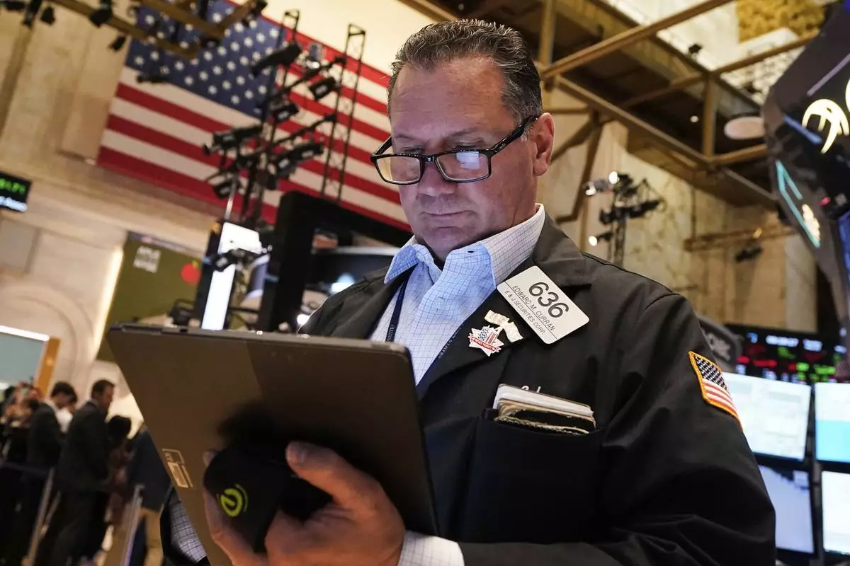 Trader Edward McCarthy works on the floor of the New York Stock Exchange, Tuesday, May 20, 2025. (AP Photo/Richard Drew)