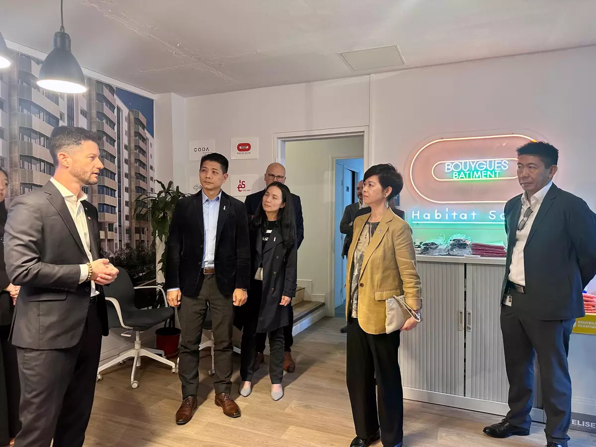 Ms Ho visited the Construction Innovation Centre at the Bouygues Construction headquarters afterwards. She met with the Chairman and Chief Executive Officer (CEO) of the Bouygues Construction Group (the Group), Mr Pascal Minault, and Deputy CEO of the Group Mr Pierre-Éric Saint-André to exchange ideas on the latest smart building technologies, green building and sustainable urban development. Ms Ho said that Bouygues Construction and Dragages Hong Kong, headed by the Group, have established a presence in Hong Kong for many years, and have contributed in various infrastructure, government buildings and public housing projects. She looked forward to continued collaboration in driving the industry to usher in a new era of smart construction.