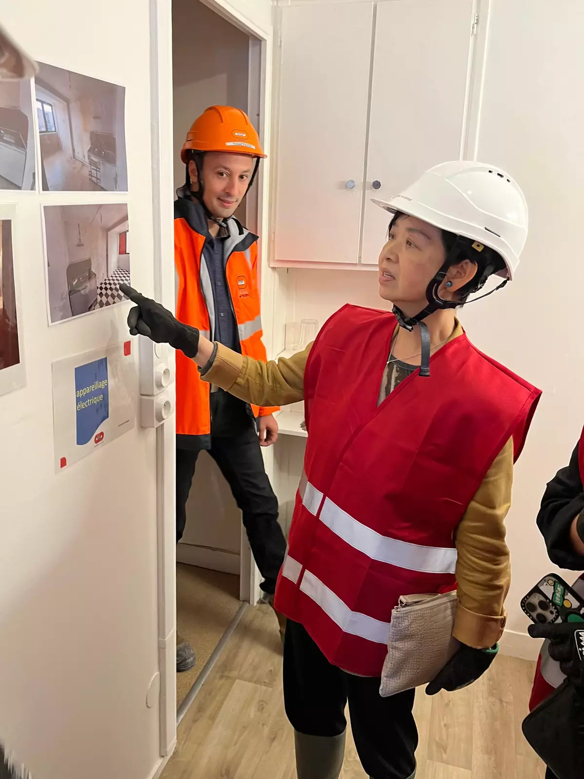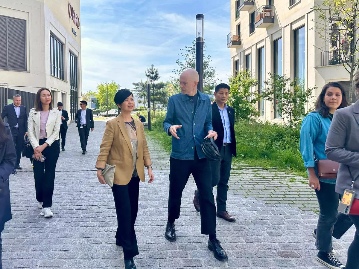 She visited a zero carbon district in Paris, Îlot Fertile, in the afternoon.Îlot Fertile is a composite development project with abundant green space, integrating social housing, office, commercial, retail, hostels and more. Renewable energy systems and innovative construction technologies are adopted during the construction to implement low-carbon building initiatives and enhance energy efficiency in buildings.