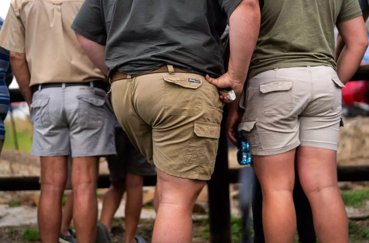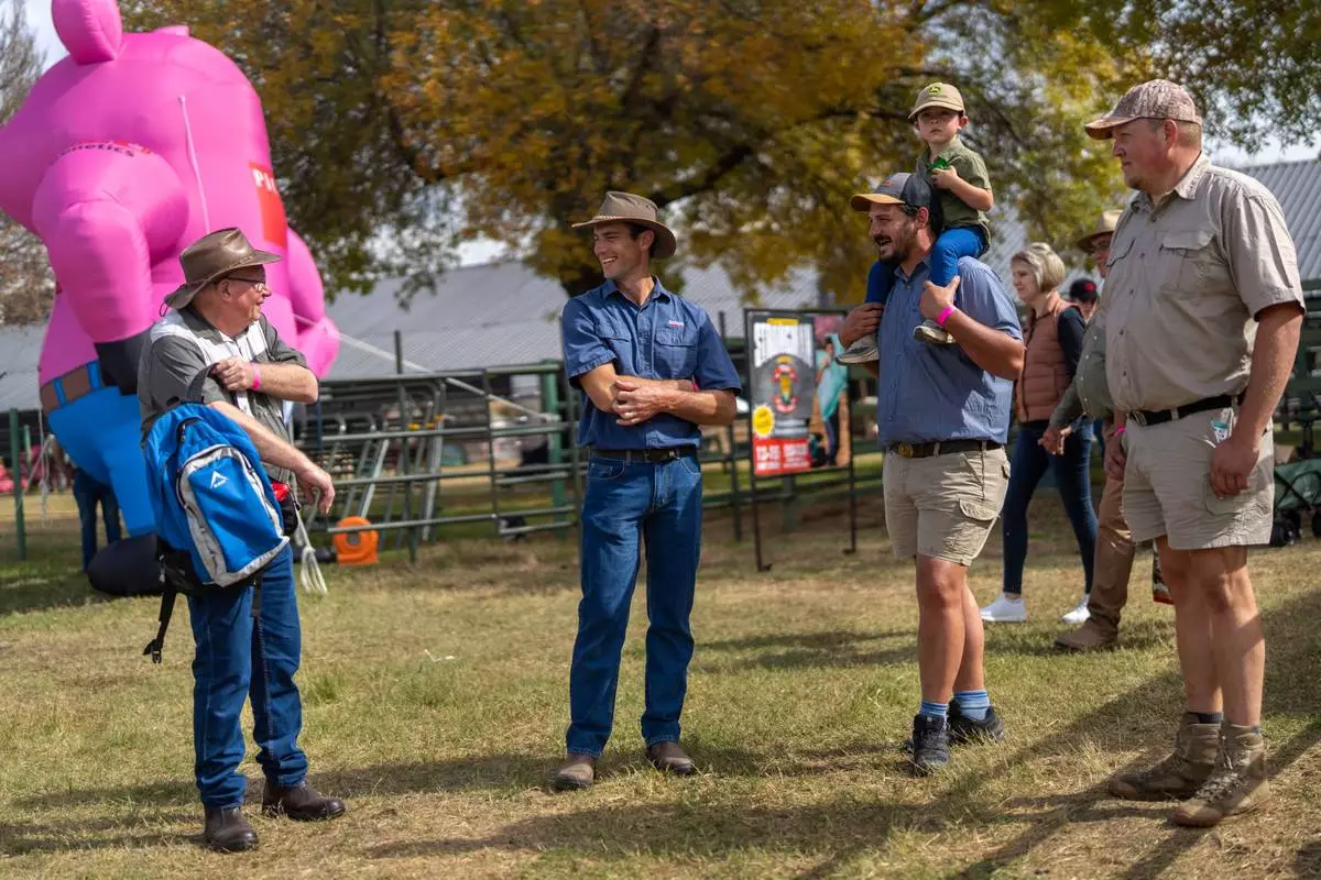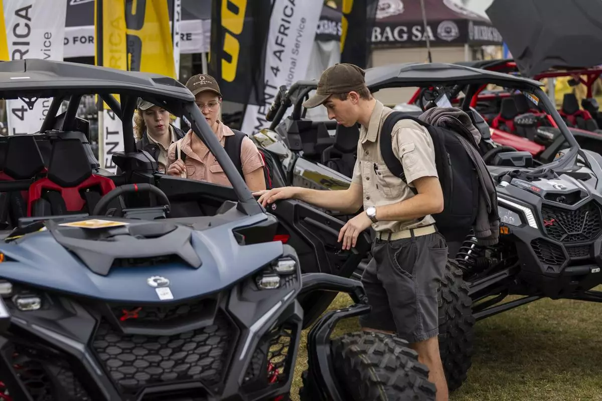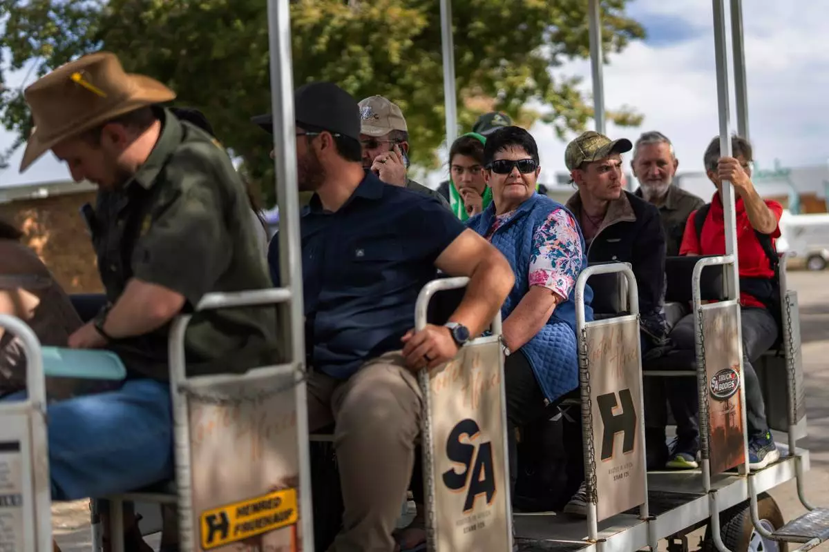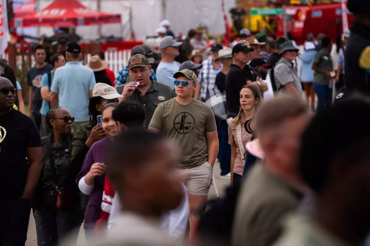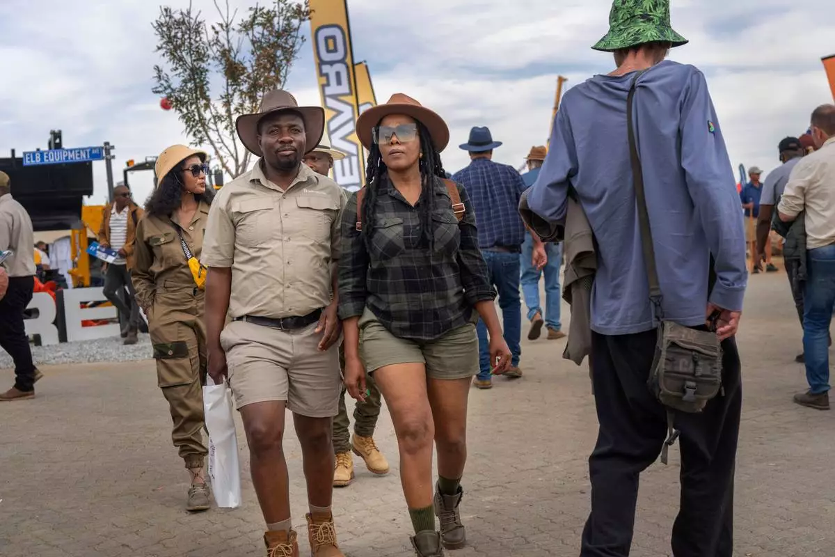 Tourists visit the Nampo agricultural fair, one of the largest in the southern hemisphere, near Bothaville, South Africa, May 15, 2025. (AP Photo/Jerome Delay)