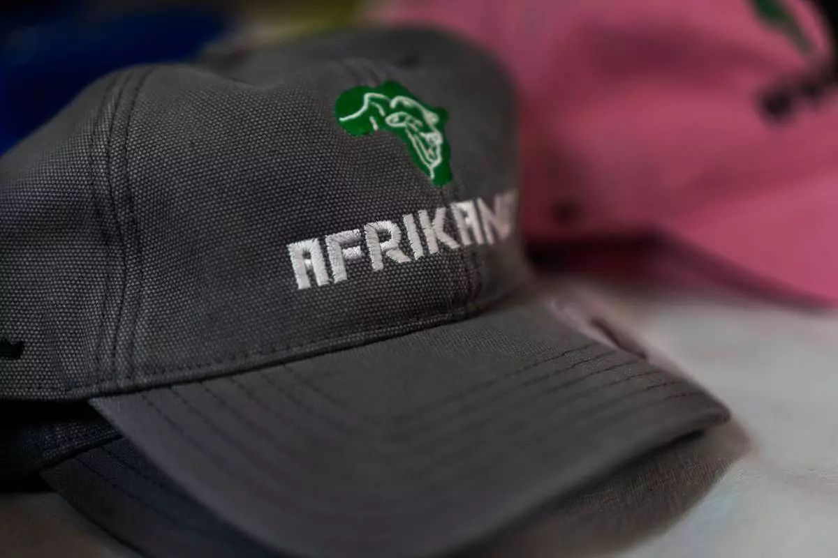A cap celebrating the Afrikaner cow breed is on display at the Nampo agricultural fair, one of the largest in the southern hemisphere, near Bothaville, South Africa, May 15, 2025. (AP Photo/Jerome Delay)