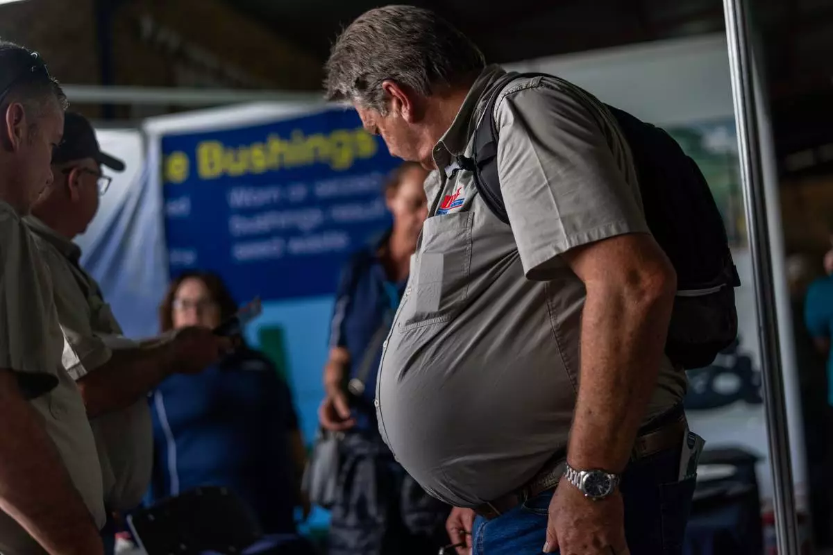 Farmers visit the Nampo agricultural fair, one of the largest in the southern hemisphere, near Bothaville, South Africa, May 15, 2025. (AP Photo/Jerome Delay)