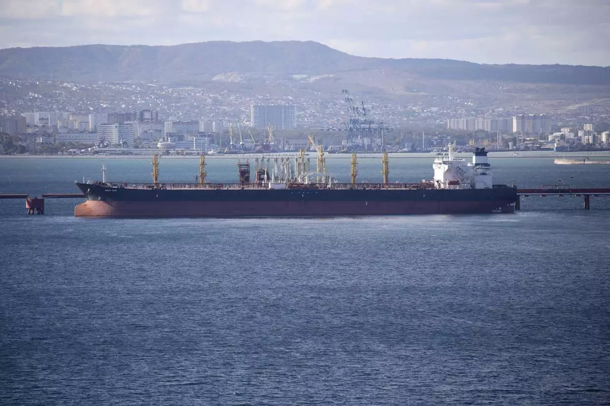 FILE - An oil tanker is moored at the Sheskharis complex, part of Chernomortransneft JSC, a subsidiary of Transneft PJSC, in Novorossiysk, Russia, on Oct. 11, 2022. (AP Photo, File)