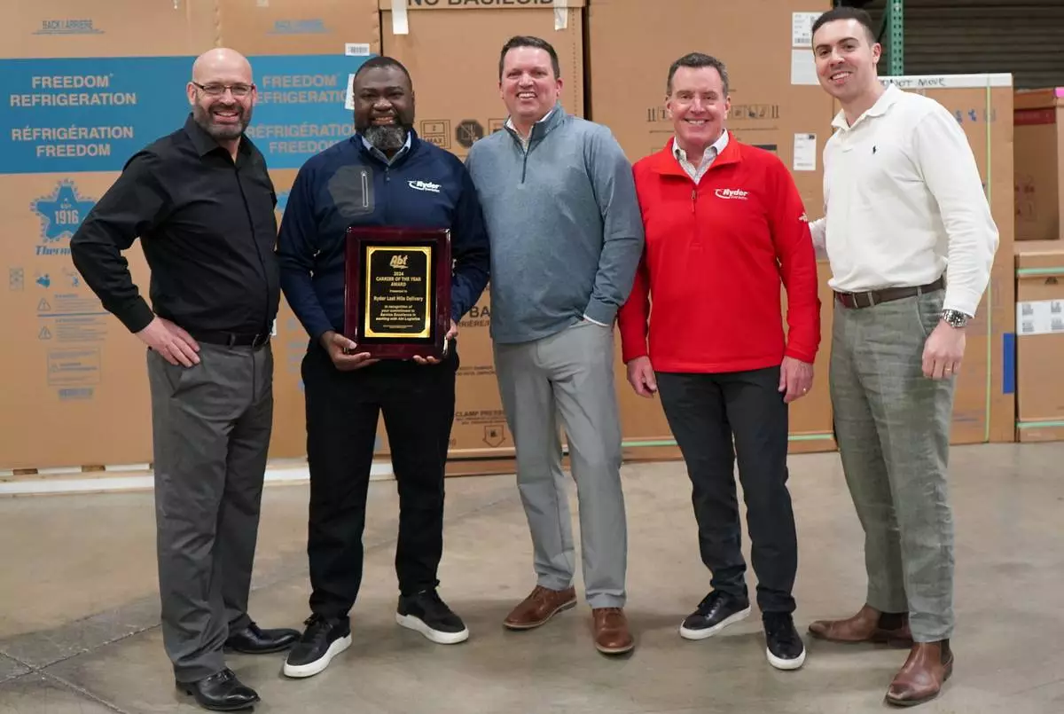 Ryder System, Inc. (NYSE: R) is the 2024 "Carrier of the Year" for Abt Electronics. Presented during Abt’s annual awards ceremony at its headquarters in Glenview, Illinois, the award recognizes Ryder Last Mile for delivering, through its qualified carrier network, more than 6,400 appliance shipments last year, with an impressive 99.97% damage-free delivery rate and 99.3% completion rate. Abt also selected Ryder for 100% alignment on core values, which put customers above all else.