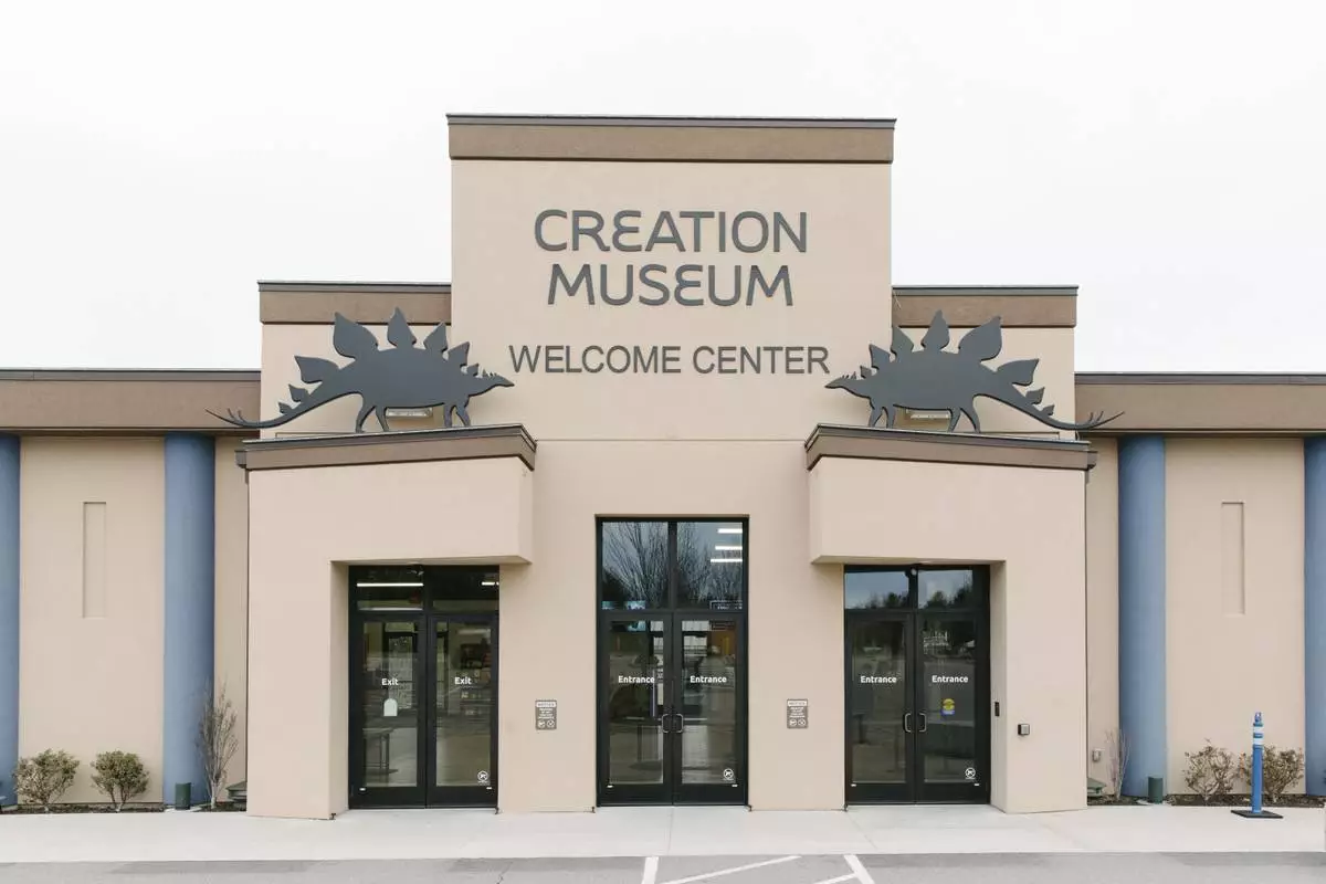 The Creation Museum Welcome Center entrance is seen in Petersburg, Ky., Friday, March 21, 2025. (AP Photo/Madeleine Hordinski)