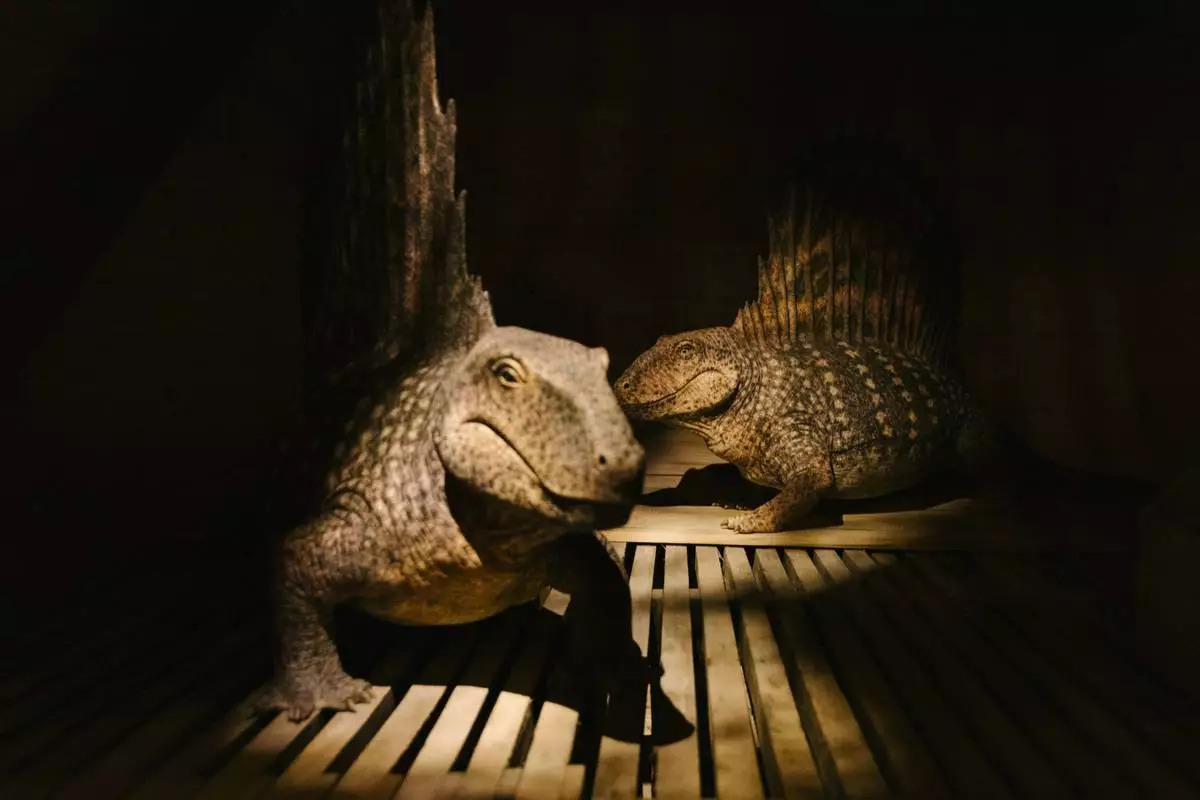 "The Sphenacodontid Kind," Dimetrodon, is displayed at the Ark Encounter in Williamstown, Ky., Friday, March 21, 2025. (AP Photo/Madeleine Hordinski)