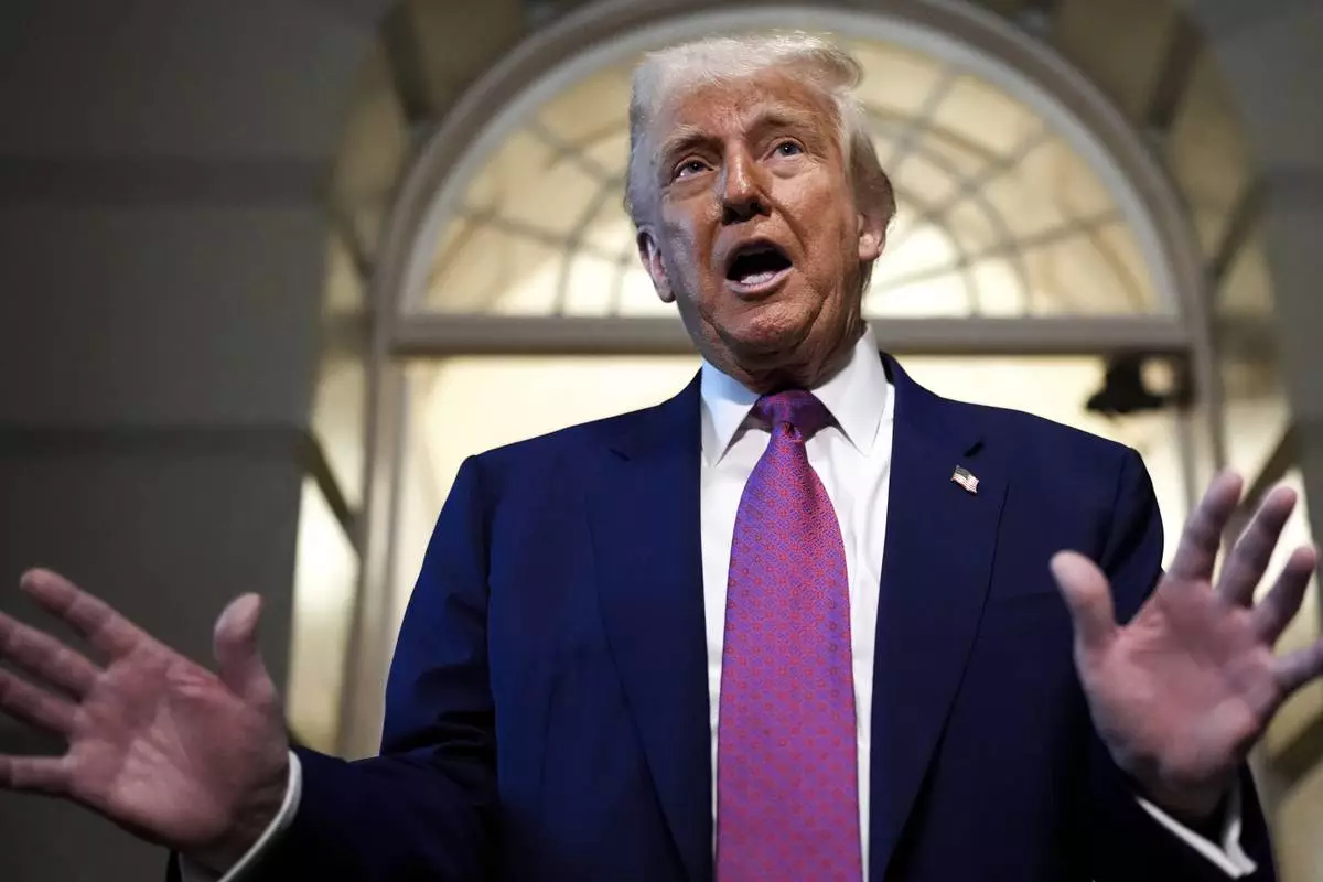 President Donald Trump speaks to reporters after departing a House Republican conference meeting, Tuesday, May 20, 2025, at the U.S. Capitol in Washington. (AP Photo/Julia Demaree Nikhinson)