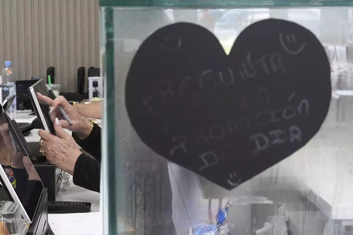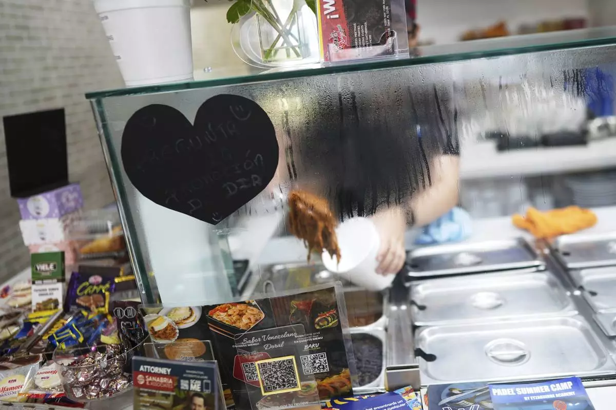 An employee rings up a customer inside a franchise of "Sabor Venezolano," one of 18 businesses owned by Wilmer Escaray which employ scores of Venezuelan immigrants with Temporary Protected Status (TPS) who are now potentially exposed to deportation, in Doral, Fla., Tuesday, May 20, 2025. (AP Photo/Rebecca Blackwell)