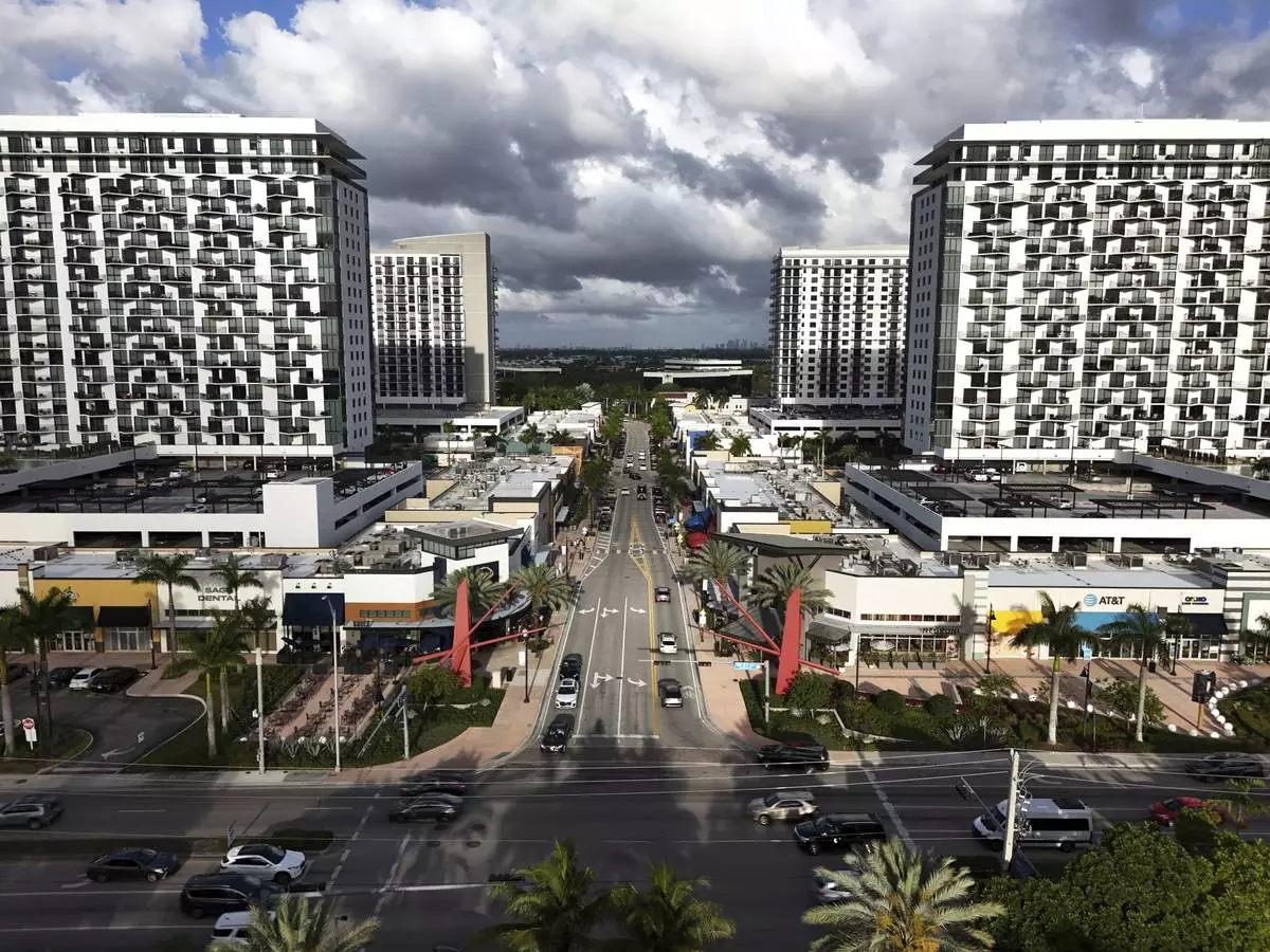 FILE - Cars pass through the area known as Downtown Doral, April 5, 2025, in Doral, Fla. (AP Photo/Rebecca Blackwell, File)
