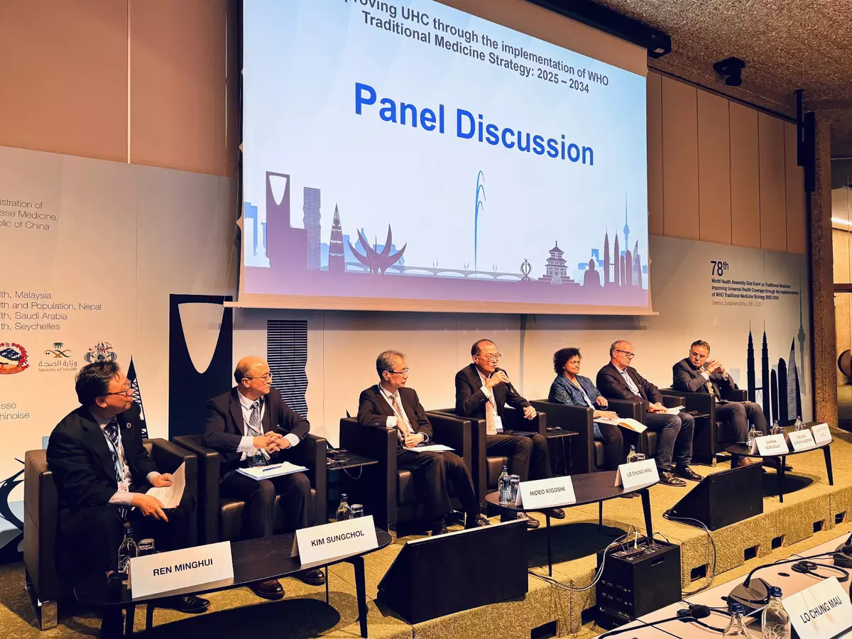 Professor Lo and Dr Lam also attended a thematic side event hosted by the National Administration of Traditional Chinese Medicine (NATCM) and cohosted by the health authorities of Malaysia, Nepal, Saudi Arabia and Seychelles. The side event, themed "Improving Universal Health Coverage through the implementation of WHO Traditional Medicine Strategy 2025-2034", was moderated by the Dean of the Vanke School of Public Health of Tsinghua University, Professor Margaret Chan, and the Director of the Institute for Global Health of Peking University, Professor Ren Minghui. The Commissioner of the NATCM, Professor Yu Yanhong, also delivered a keynote speech at the side event.