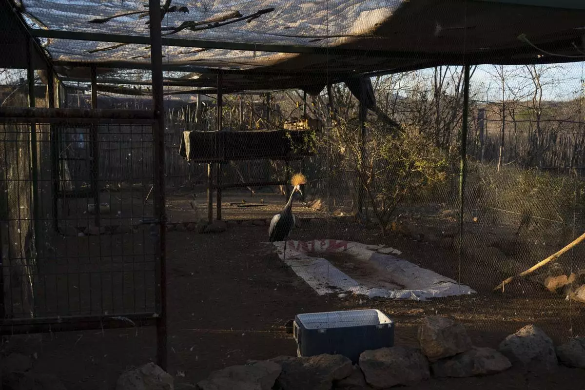 An elephant bird stands in its enclosure at the animal refuge Ostok Sanctuary, on the outskirts of Culiacan, Mexico, Monday, May 19, 2025. (AP Photo/Felix Marquez)