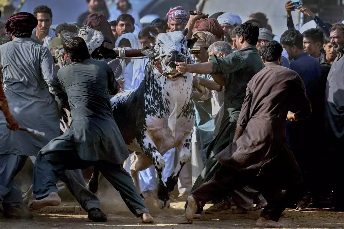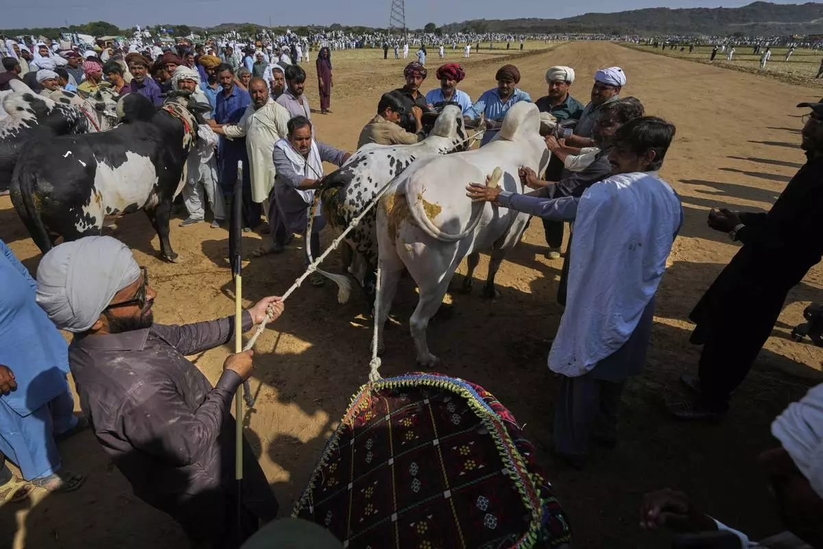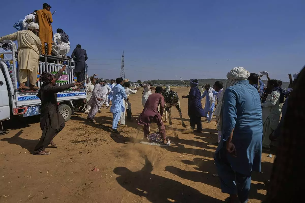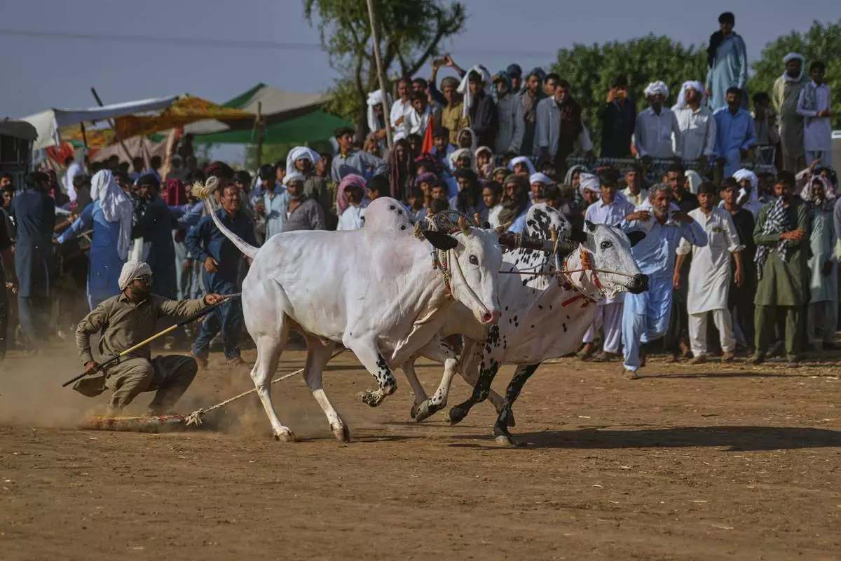 MALAL, Pakistan (AP) — Bulls are yoked together by thick wooden frames in a sun-scorched field of rural Pakistan, while behind them, holding onto nothing more than ropes and his honor, is a man on a plank.