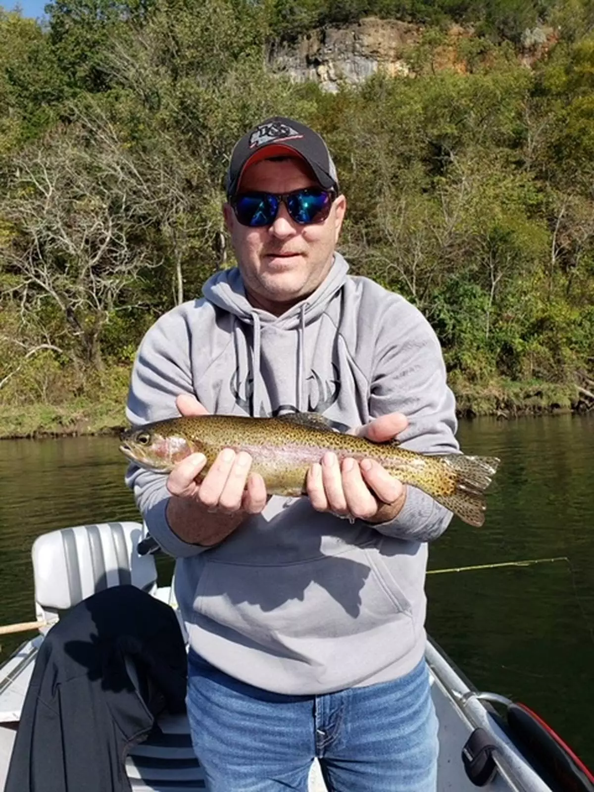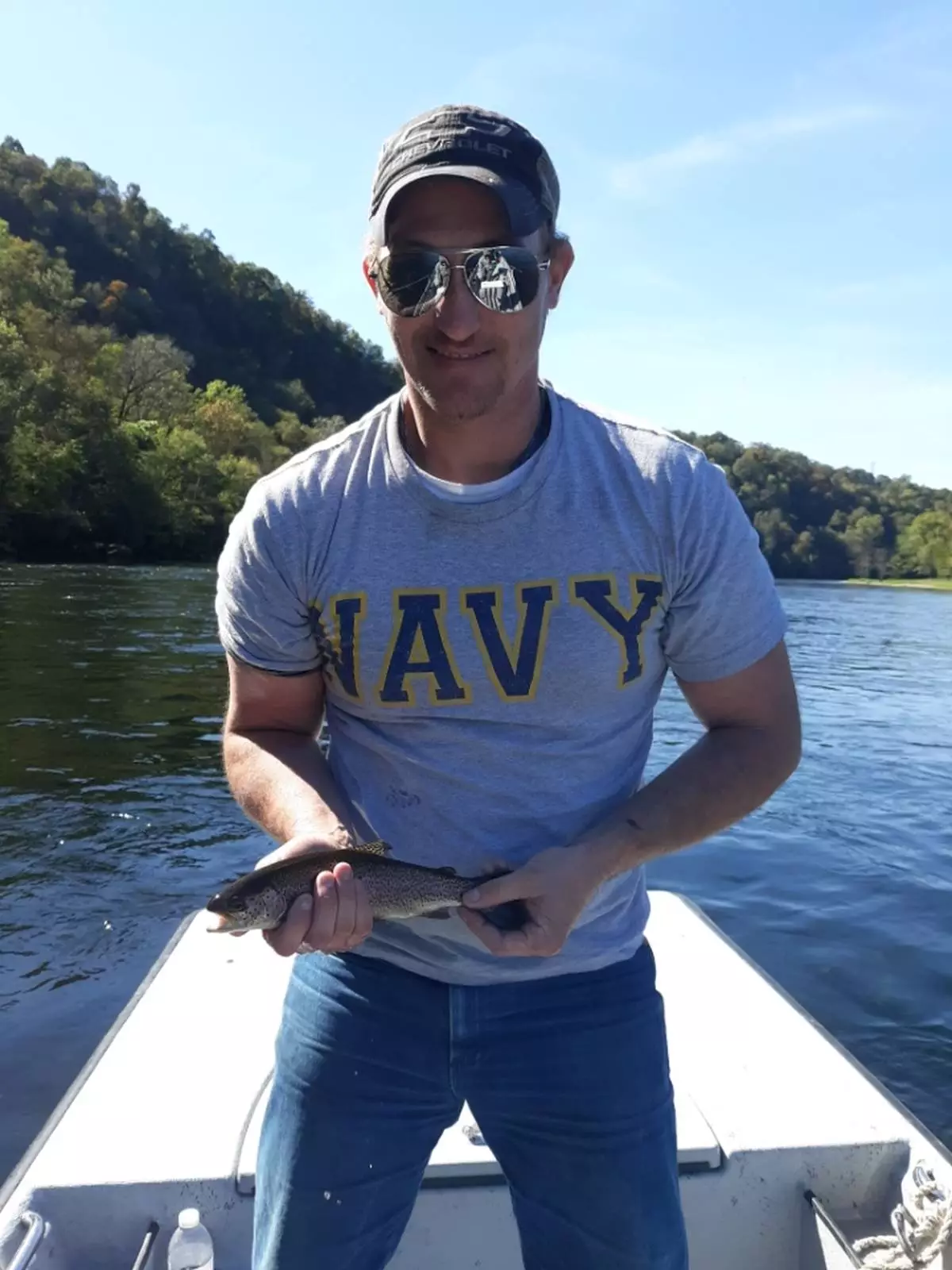 Stryten Energy employee and U.S. Navy Veteran on Rivers of Recovery fly fishing trip.