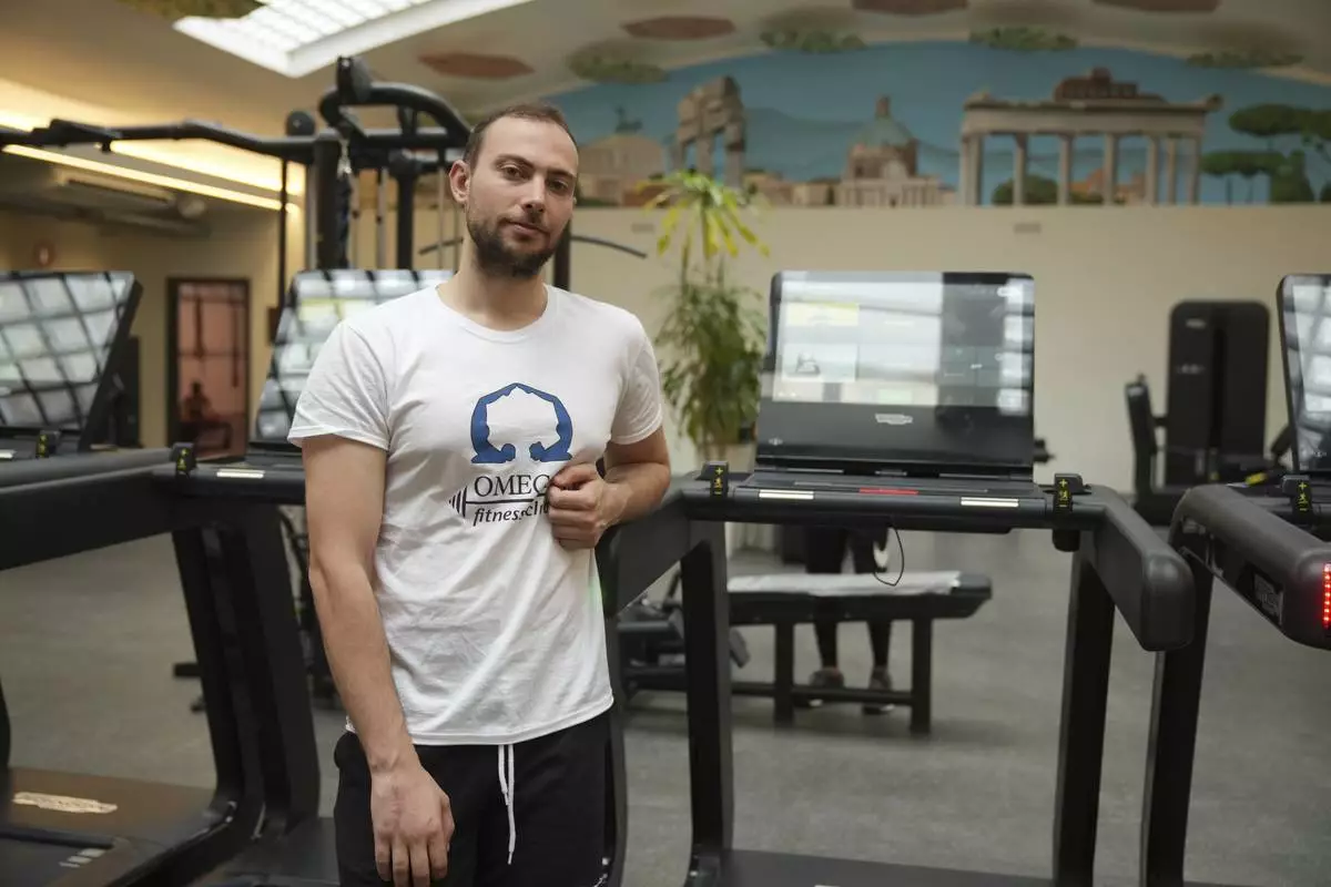 Personal trainer Valerio Masella, 26, who trained Robert Francis Prevost before the cardinal became Pope Leo XIV, works at his gym near the Vatican, Wednesday, May 21, 2025. (AP Photo/Alessandra Tarantino)