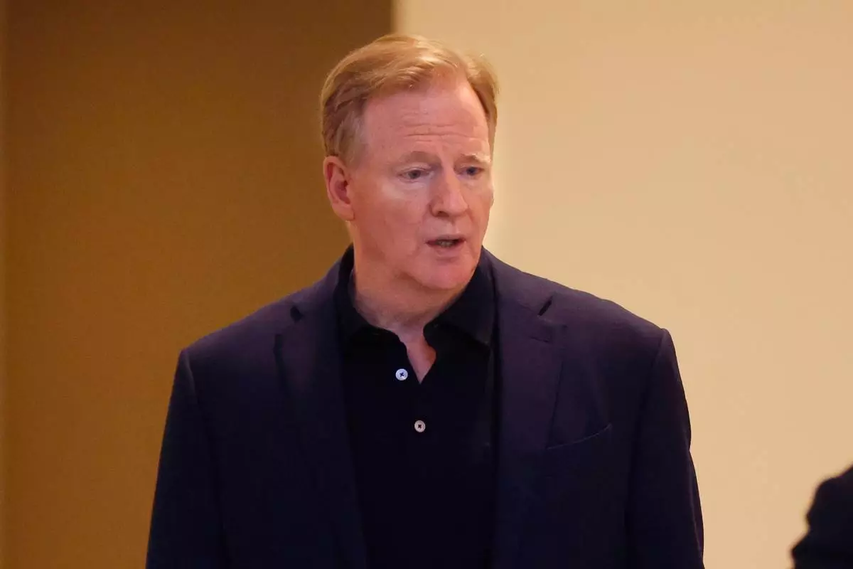 NFL commissioner Roger Goodell arrives at the NFL football owners meeting, Wednesday, May 21, 2025, in Eagan, Minn. (AP Photo/Bruce Kluckhohn)