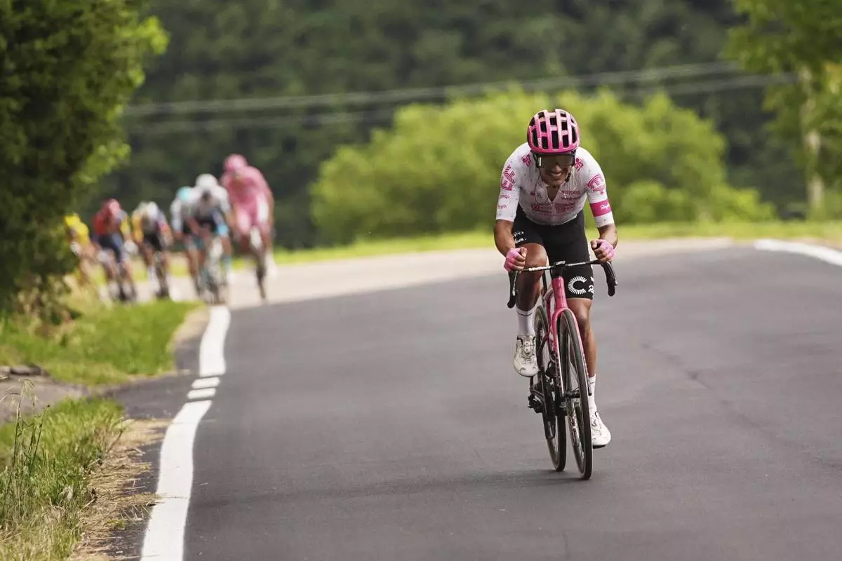 “It was a very, very tough stage, and from the very first climb I saw that so many people were suffering," said Carapaz, the Tokyo Olympics road race champion in 2021. “But I knew I had good legs, I chose the right moment … and it was almost like a time trial to make it all the way home.”