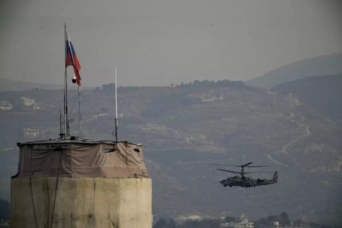 FILE - A Russian helicopter flies over the Hmeimim Air Base, a Syrian airbase currently operated by Russia, located southeast of the city of Latakia in the town of Hmeimim, Syria, on Monday, Dec.16, 2024. (AP Photo/Leo Correa, File)